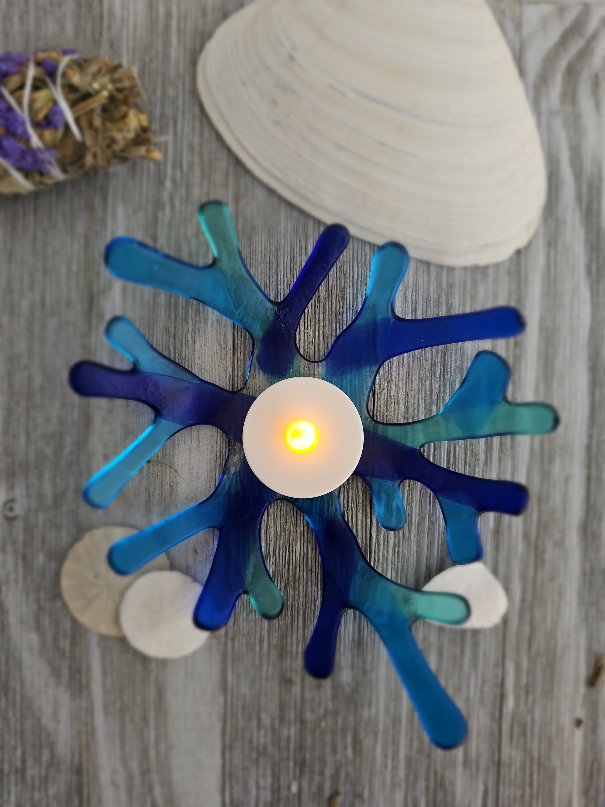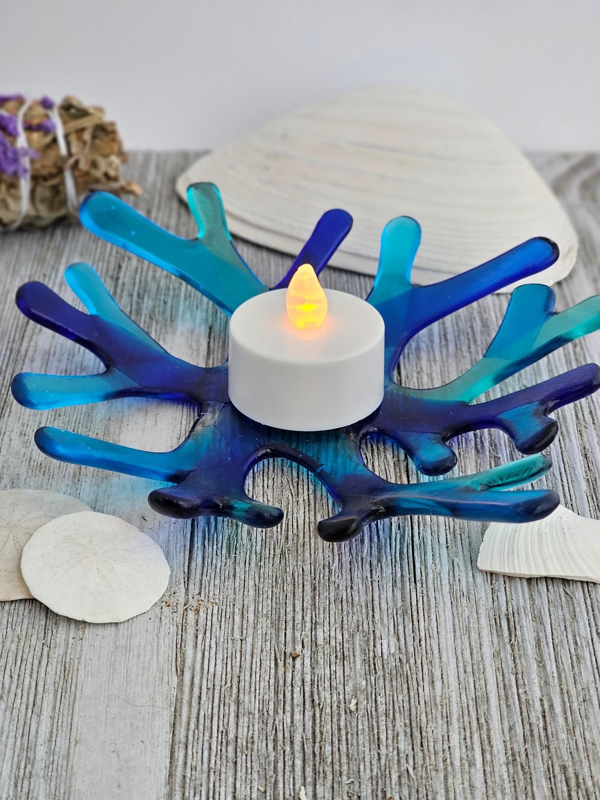 Not just for candles, use it as a soap holder, sponge holder, or even as an eye-catching centerpiece on your table. With its unique design and versatile uses, the Fused Glass Coral Bowl will be the perfect addition to your home.