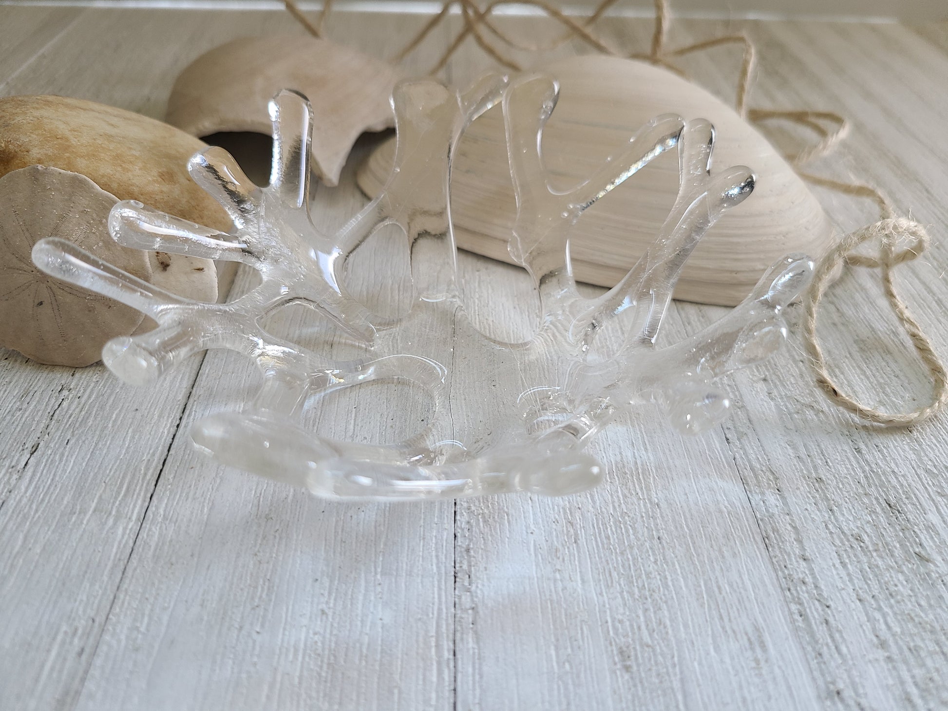 This listing is for 1 random fused glass coral bowl using clear glass. Each coral bowl is made with clear glass; however, the shape and glass placement are different for each piece created, making each a unique piece.