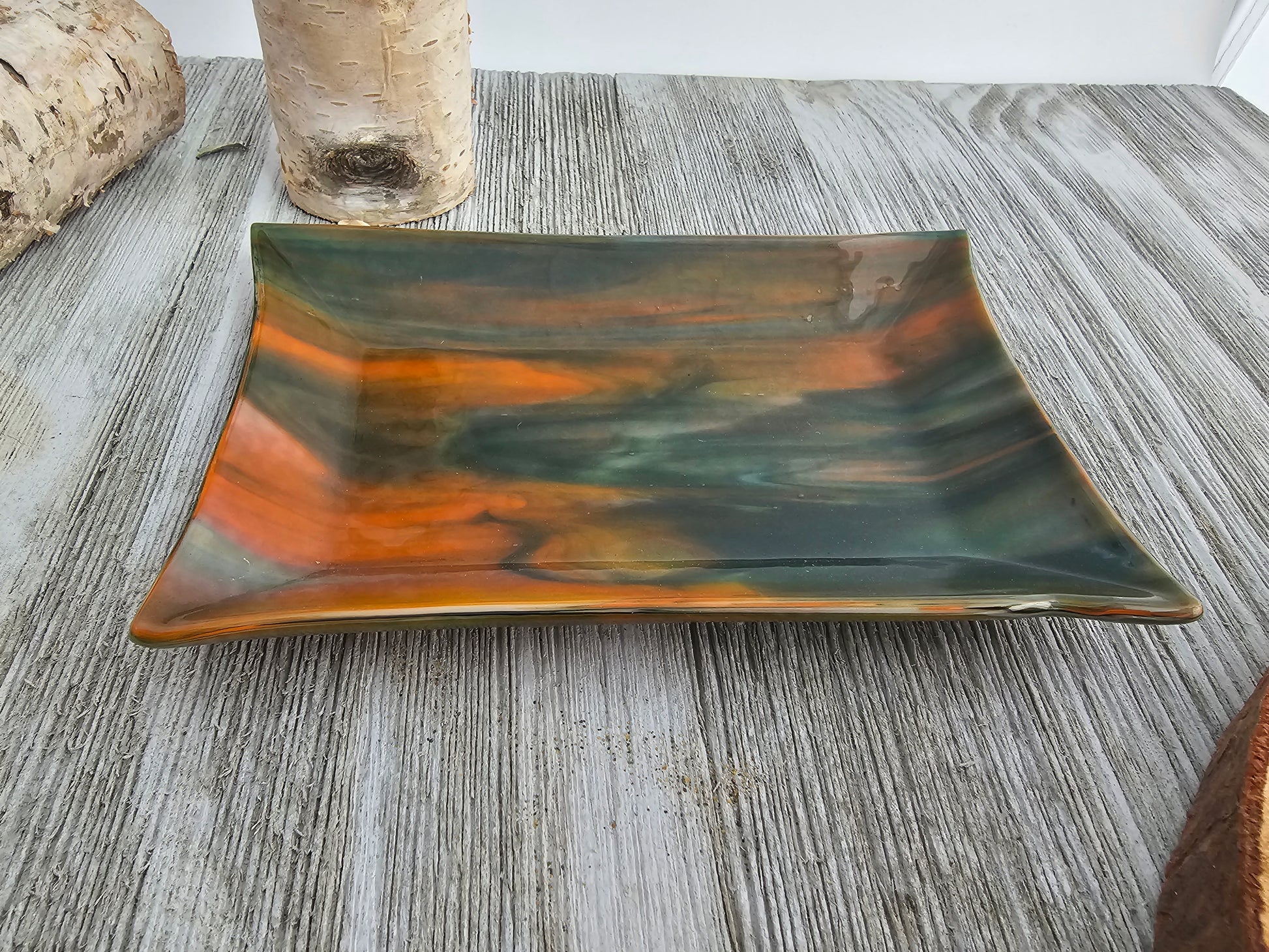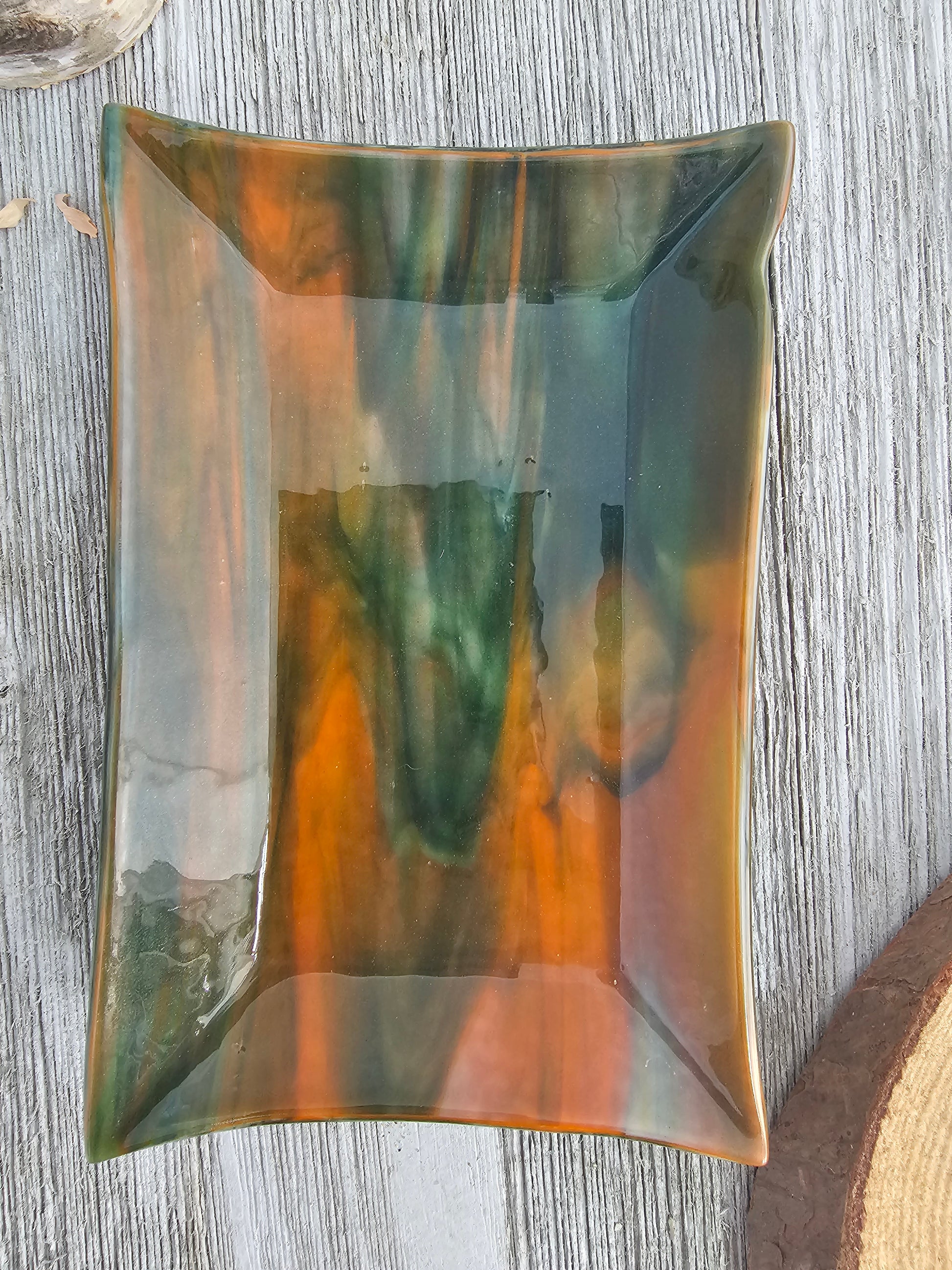 Fused Glass Dish, Orange and Green Streaky Glass, Soap Dish, Candle Holder, Ring Holder, Trinket Dish