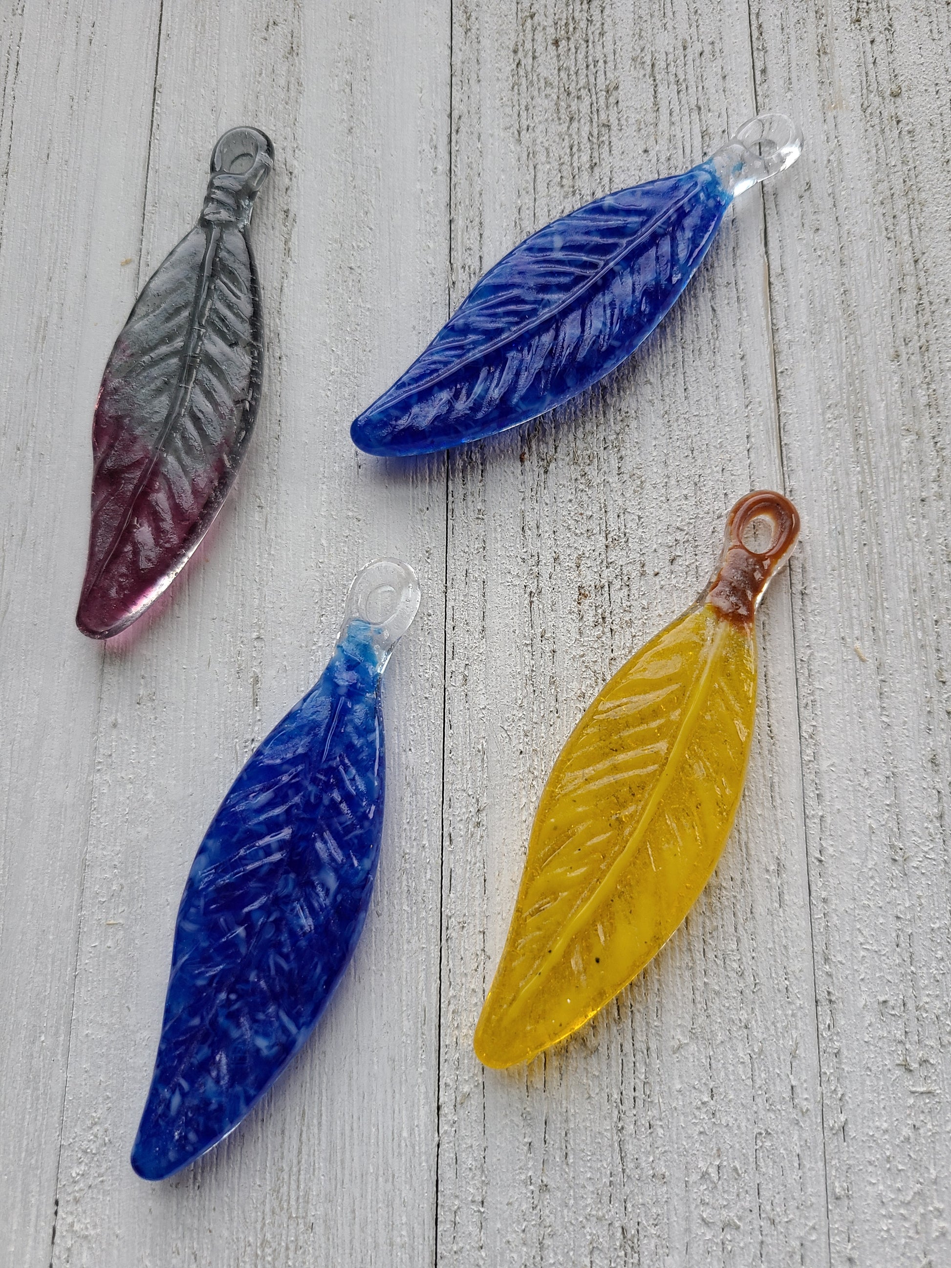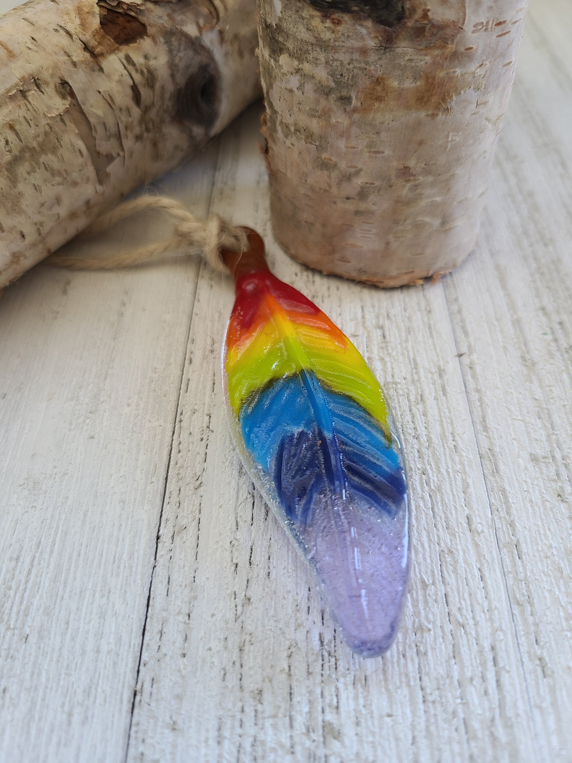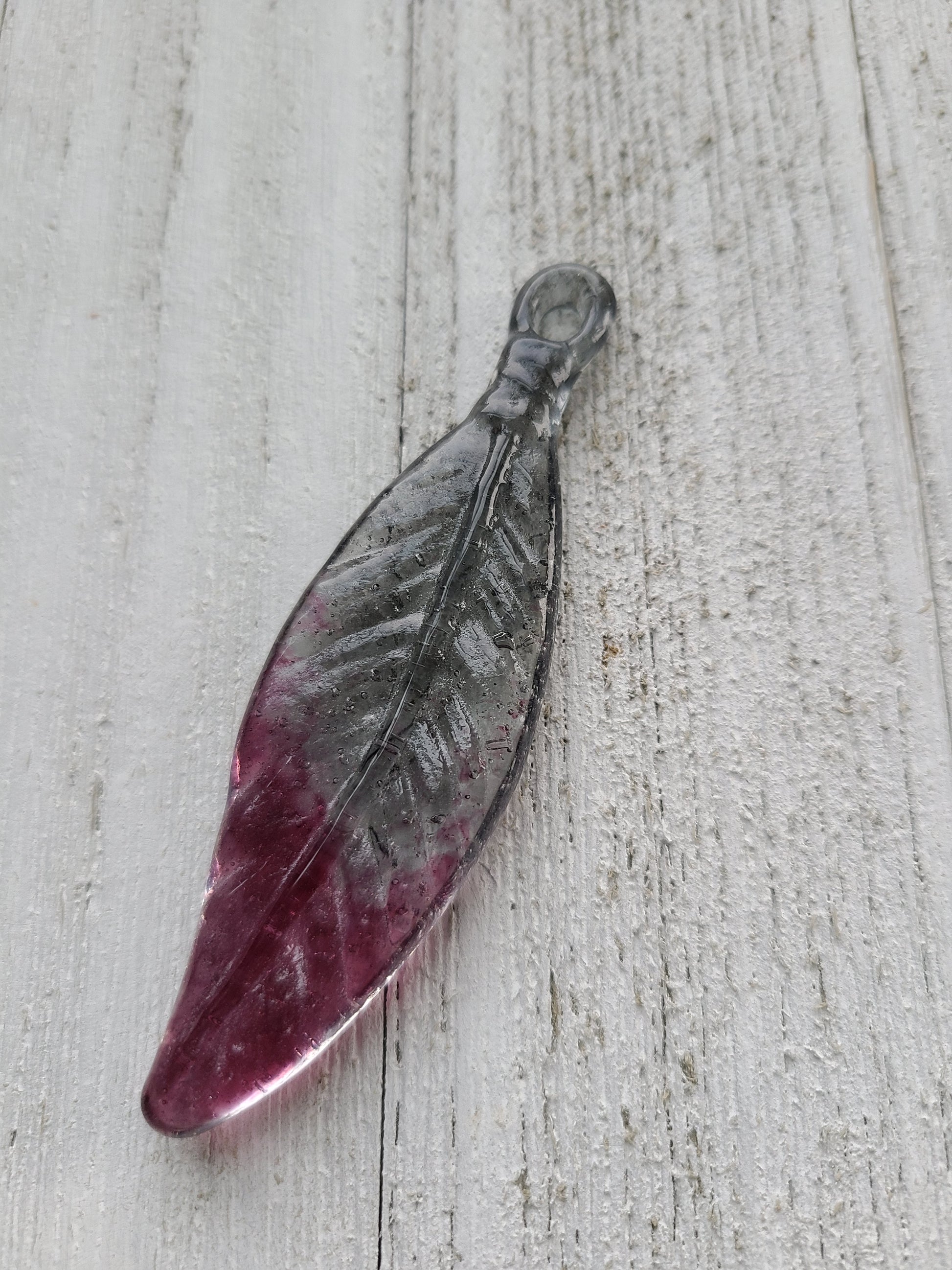 This listing is for one random fused glass feather, you choose the general colorway. This fused glass feather can be used as an ornament or a even necklace pendant. This feather ornament would be a great gift for anyone or a splurge for your own joy.