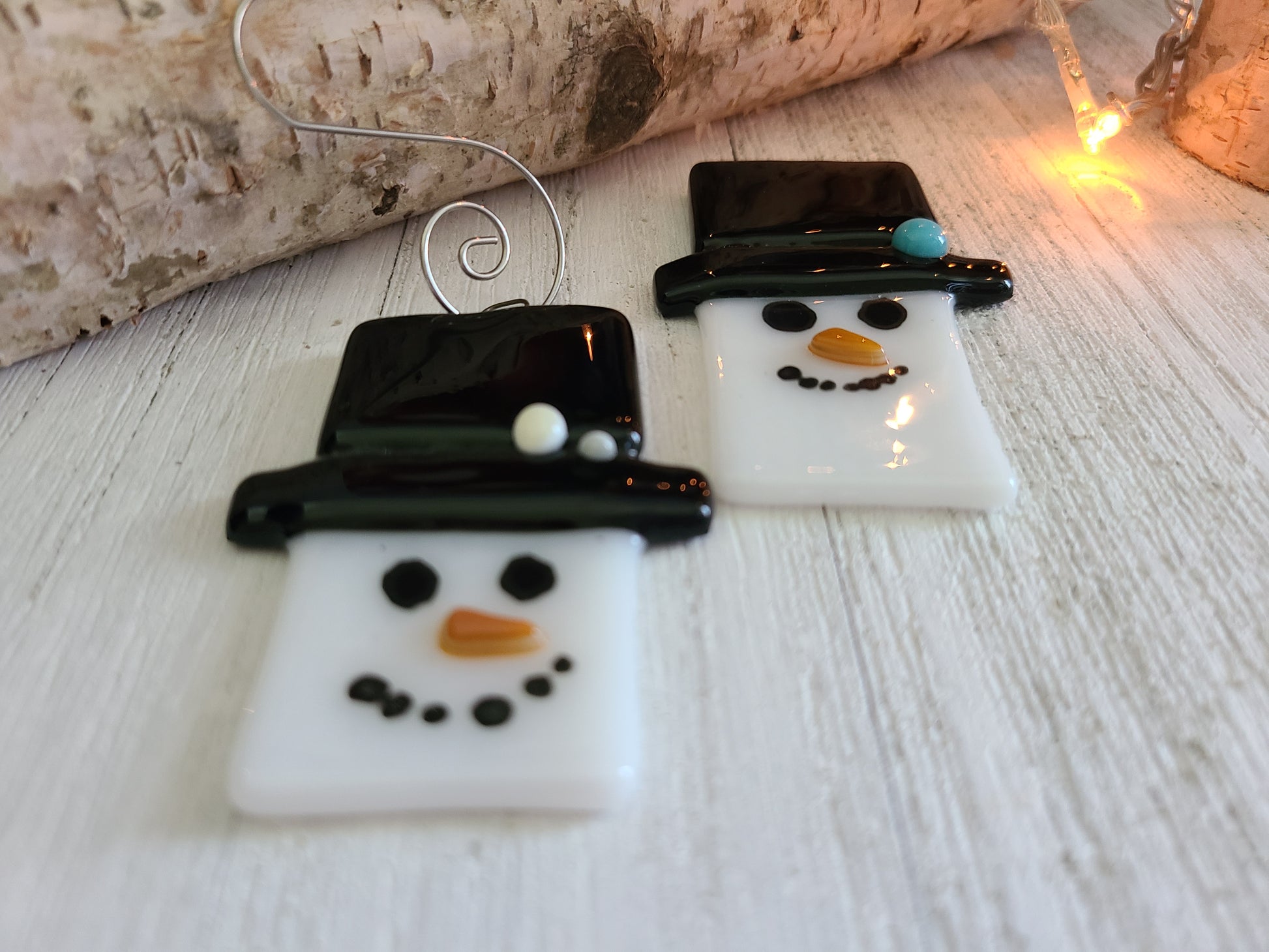 đ⨠Add some whimsical charm to your holiday decor with a fused glass snowman ornament! This listing includes one randomly picked ornament, either melted or rectangle, each with its own unique flair. Perfect for a Secret Santa gift or to adorn your own tree.