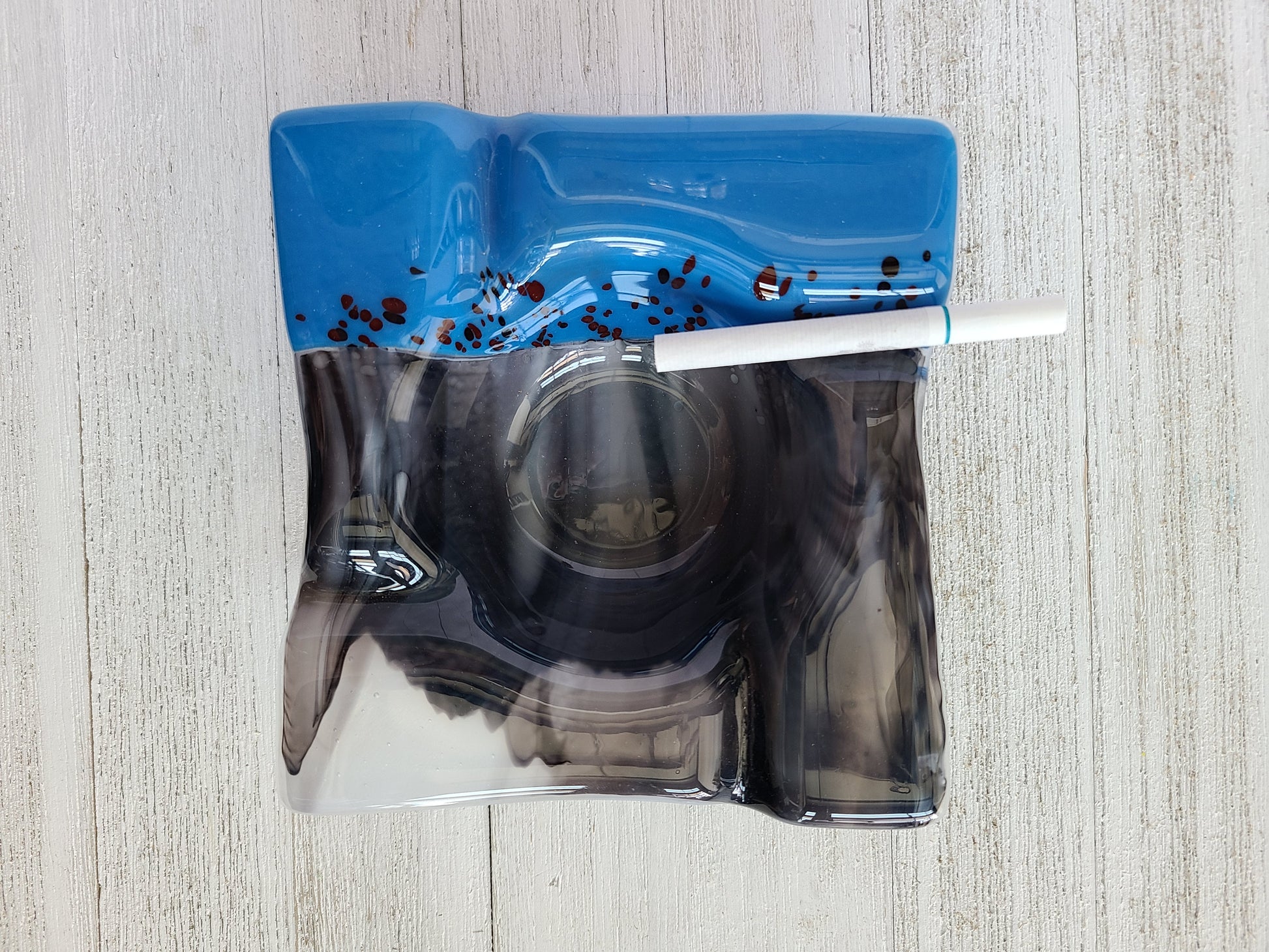 This square ashtray could also be used as a simple candy dish, trinket dish or even a chip dip bowl. This ashtray bowl measures approximately 6" x6" x 1.7