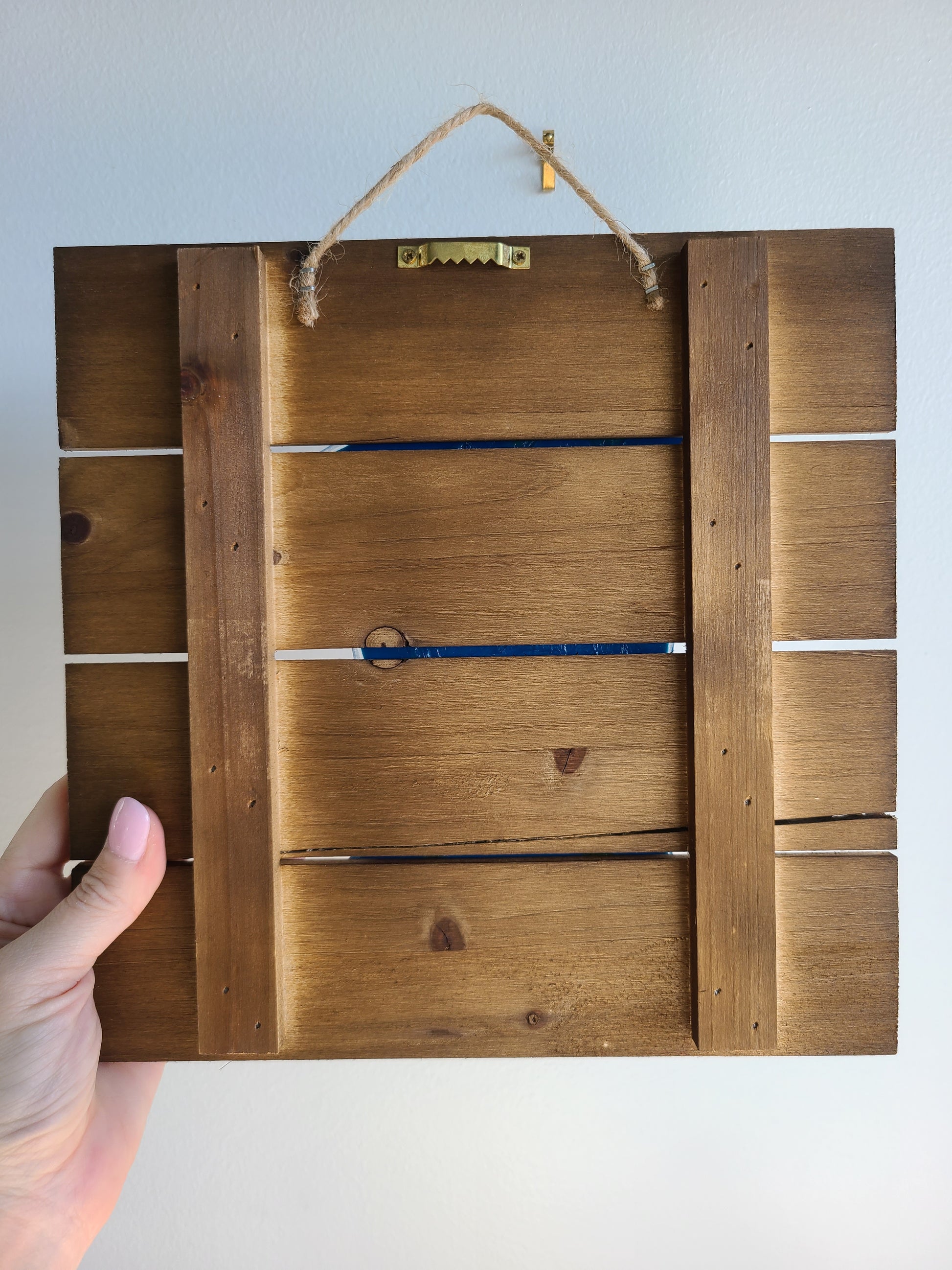 This wall decoration measures approximately 10" by 10" total. The Minnesota art piece measures approximately 7.5" by 6.5" at its widest points.