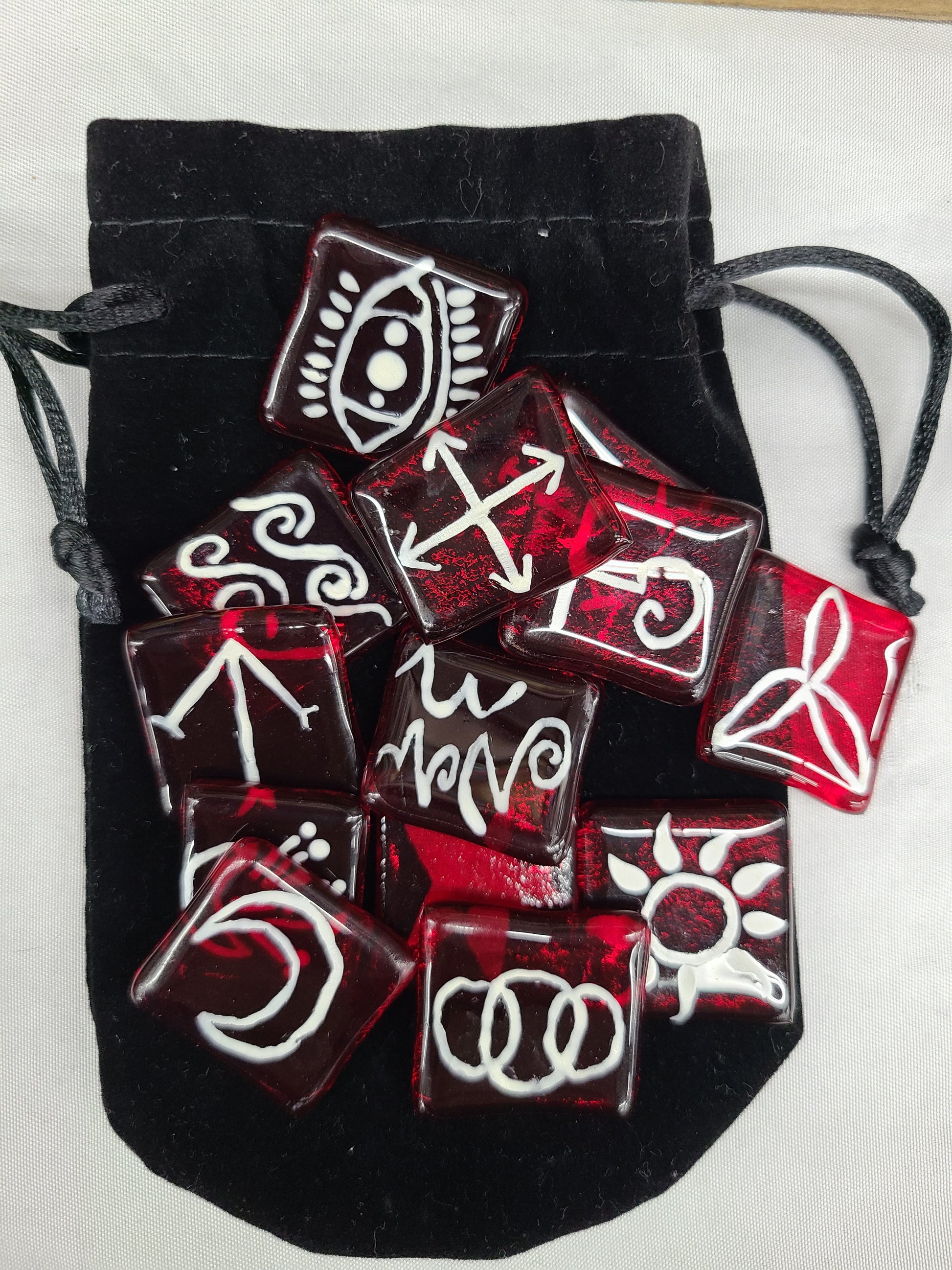 Summon your intuition & inner knowledge with Fused Glass Witches Runes! Our hand cut & painted glass runes come in a 13-piece set with a holding bag, so you can take them with you wherever you go. Each rune is unique and made to last. Unlock your power with Fused Glass Witches Runes!