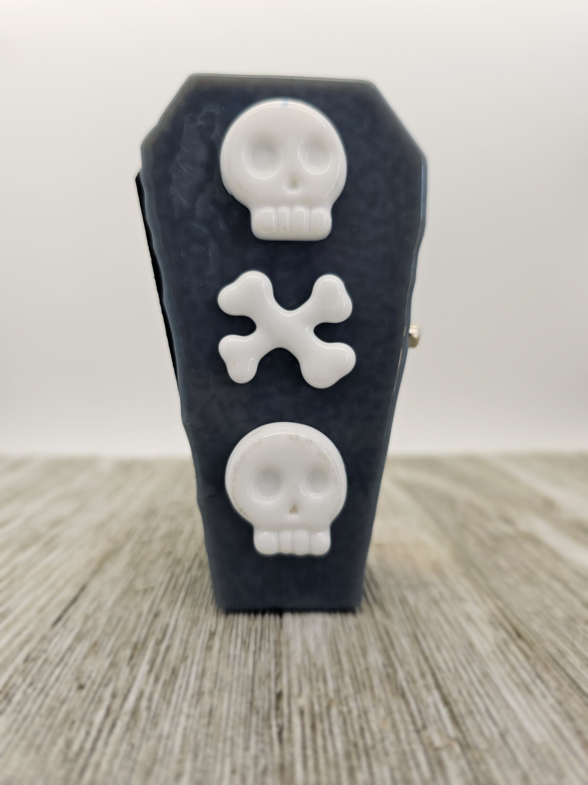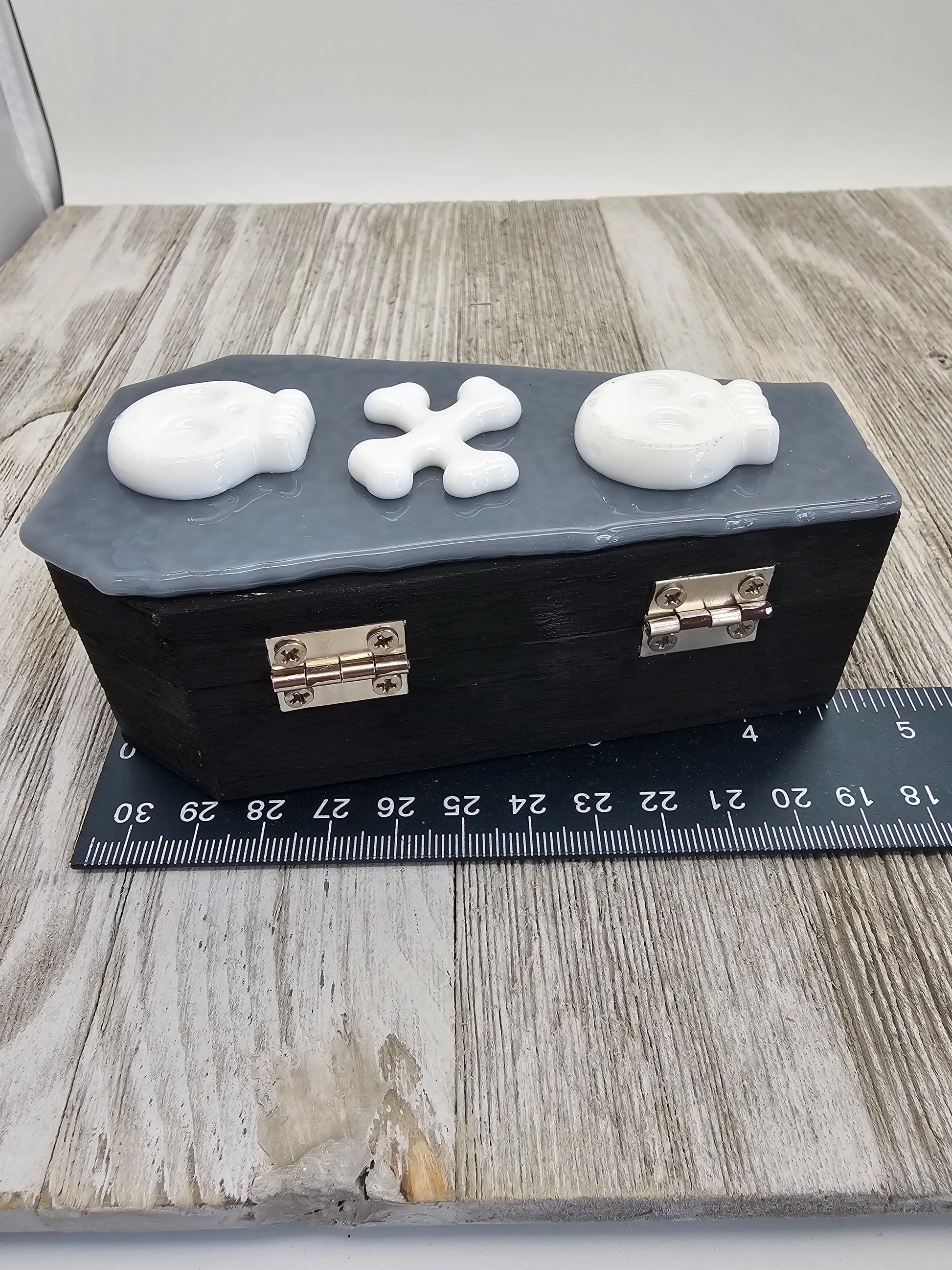 Wooden Coffin Trinket Box with a Fused Glass Lid, Skull and Crossbones