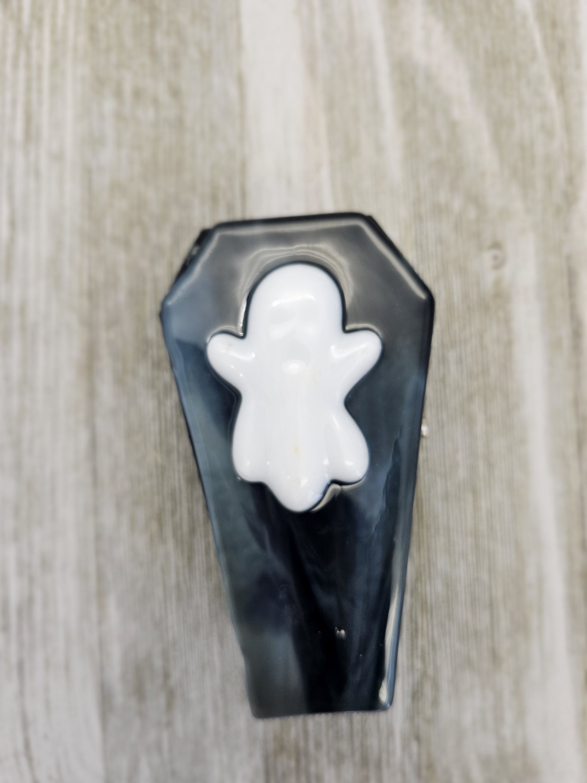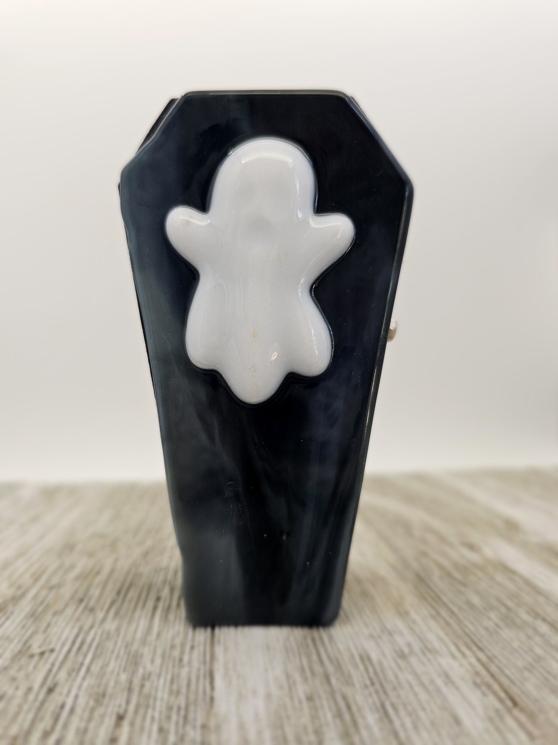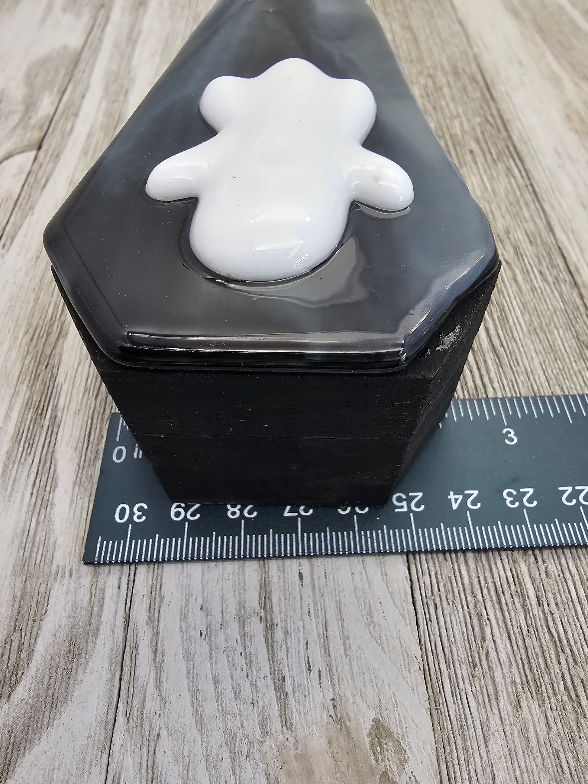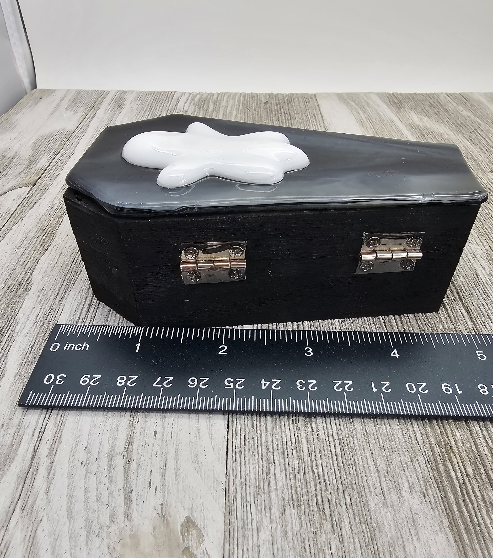 Wooden Coffin Trinket Box with Fused Glass Lid, Ghost